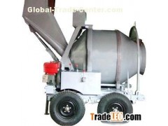 JZG350 concrete mixer is a kind of self-dump double-prick reversal discharging machine; the drum is driven by the gear ring; during working, the frontal revolution is mixing, and the reversal revolution is discharging. The hopper is climbing type. The plastic and half-dry hard cement can be mixed.